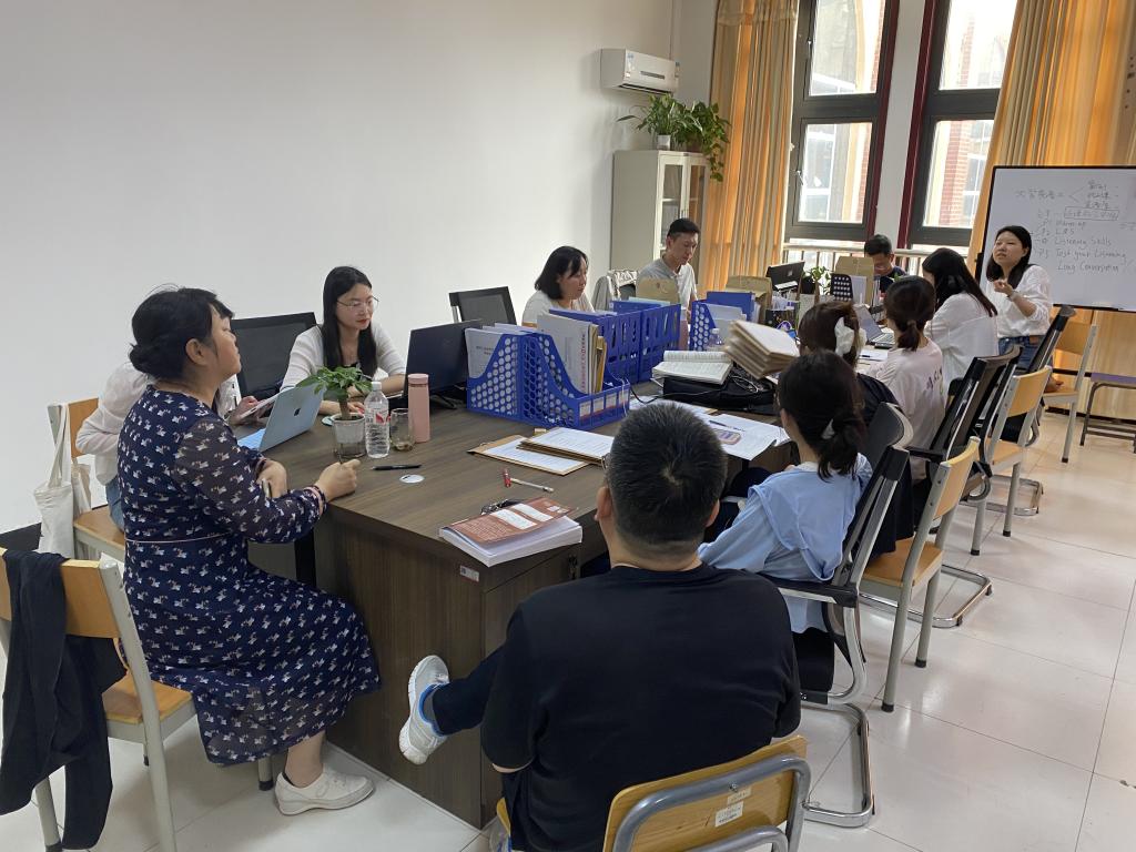 (文图/熊晨曦)为进一步推进大学英语教学工作,加强课程思政建设与教材选用科学性,公共英语教研室(Ⅲ)于5月13日下午15:00在文华楼2-402办公室开展了以“凝萃课程思政成果,共议教材选用良策”为主题的教研活动。本次活动由郭慧芳老师主持,教研室全体教师积极参与。