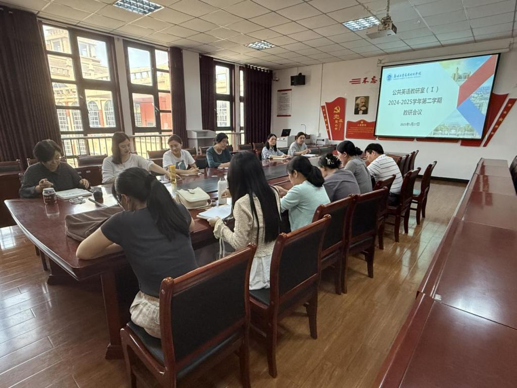 (文图/丁冠郦)为深入推进课程思政建设,探索大学英语教学新路径,beat365公共英语教研室(I)于2025年5月27日下午在文华楼2-413会议室召开本学期第八次教研活动。本次活动由郭胜男老师主持,公共英语教研室(I)全体教师参加。
