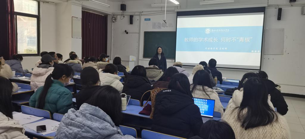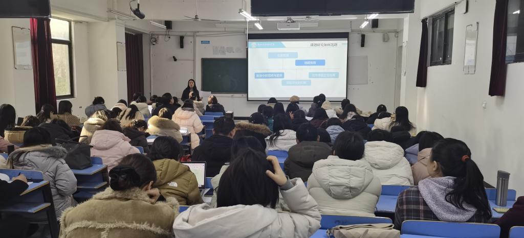 (文图/王勇鹏)2026年1月7日下午,在文华楼2-102教室,围绕高校教师课题申报策略与学术成长路径,大学英语教研室(I)主任马利娜副教授为本院教师带来了题为“教师的学术成长,何时不‘青椒’”的精彩学术报告。