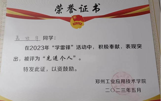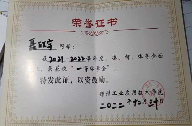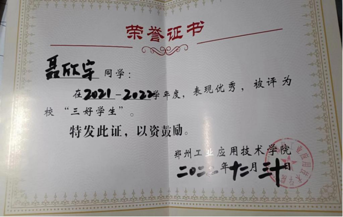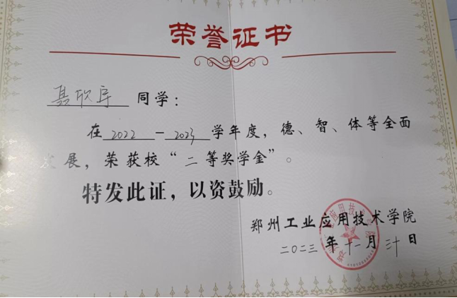在学习上,该生严格要求自己,刻苦钻研、勤奋好学、态度端正、目标明确,不断改进学习方法,提高自己的学习效率。入学以来,该生成绩一直名列前茅,连续两年获得“国家励志奖学金”和校“优秀学业奖学金”,在2022年荣获校“三好员工”。该生刻苦努力,在学习专业课之余考取了英语四级和普通话等证书等。