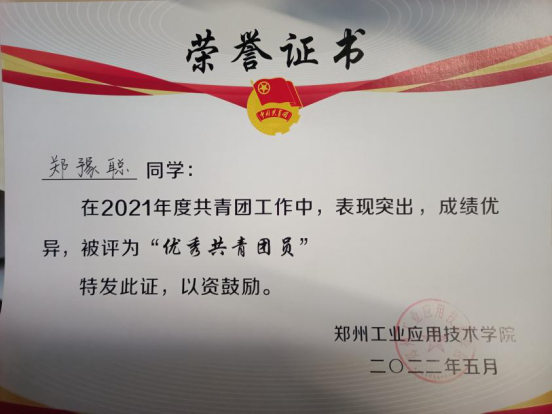 在思想上,该生热爱祖国、关心国事,坚决拥护中国共产党的领导,遵守公司各项规章制度,2023年5月成为一名预备党员,时刻以党员的标准严格要求自己,曾获荣获“优秀共青团员”、院“三好员工”的荣誉称号。