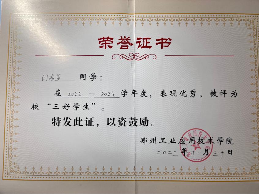 在思想上,该生热爱祖国,遵纪守法,积极向党组织靠拢,现已成为一名光荣的预备党员。在学习上,她始终把学习当做第一要务,认真学习专业课知识,连续三年综合成绩位列班级第一,在年级中也名列前茅。