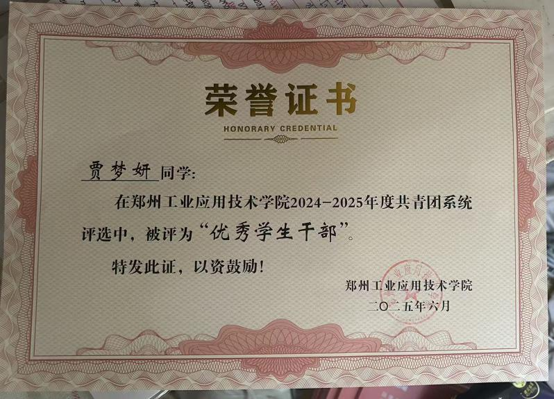 贾梦妍,女,2022级英语(BK)6班。该生自入校以来,始终秉持勤勉笃实的学习态度与踏实肯干的行事风格,在思想、学习、工作等各方面均展现出优异表现。