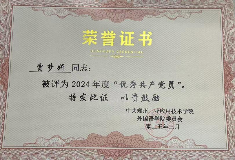 在思想方面,她政治觉悟高、立场鲜明,始终以党员标准严格自我要求,积极投身服务工作,充分彰显党员的先锋模范本色。在学业方面,她始终以高标准砥砺自我,凭借扎实的学习功底与不懈的努力,于大三学年斩获学业成绩班级第二、综合成绩班级第一的亮眼佳绩。