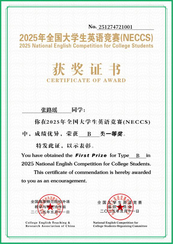 张路瑶,女,2023级英语(BK)4班。该生自入学以来,始终以饱满的热情和积极乐观的态度对待学习和生活,是老师的得力助手和同学们的好榜样。