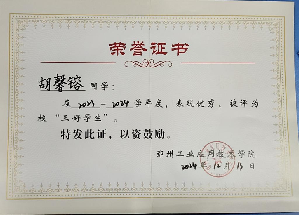 胡馨镕,女,2023级英语(BK)03班。该生自入学以来,始终以“勤耕不辍、笃行不怠”为准则,在思想、学习、工作中全面发展,力求突破。